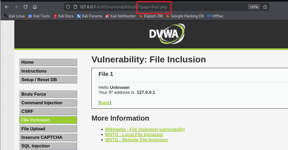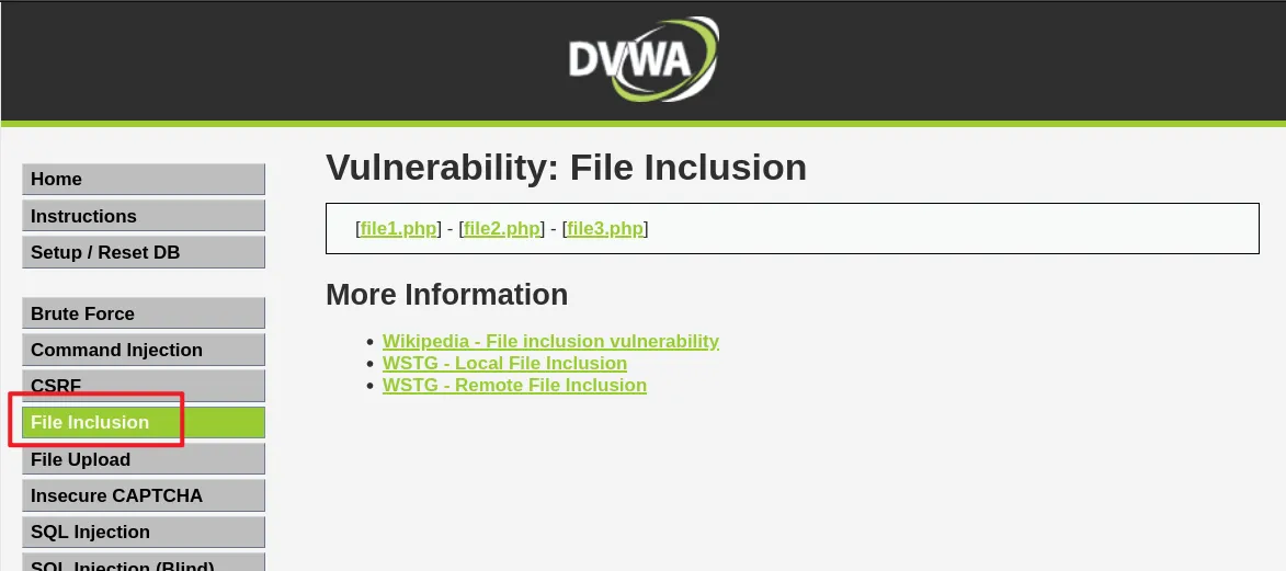 세팅은 완료했으니, 다시 File Inclusion탭에 들어가 실습을 진행합시다.