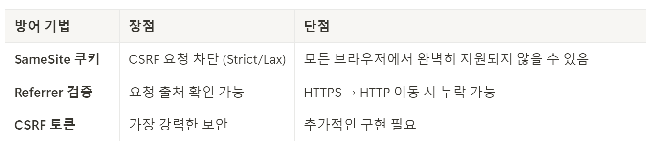 - 즉, 요청이 공식 웹사이트에서 발생한 것이 아닐 경우 CSRF 공격으로 간주하고 거부