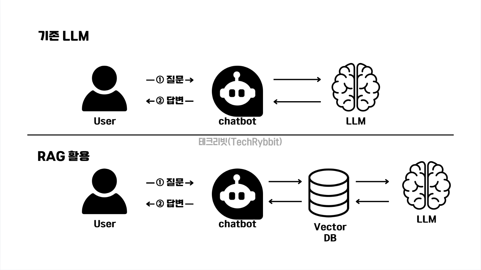 - 기존 LLM이 단순히 학습된 데이터만 사용했다면, RAG는 검색한 최신 정보를 활용하여 답변을 보강합니다.