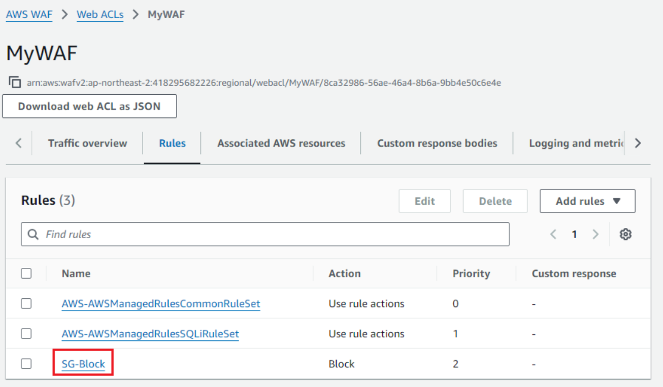이전 게시글에서는 AWS WAF의 개념과 AWS에서 제공하는 관리형 룰(Managed Rule)을 활용하여 SQL Injection과 XSS 공격을 차단하는 실습을 진행했습니다.