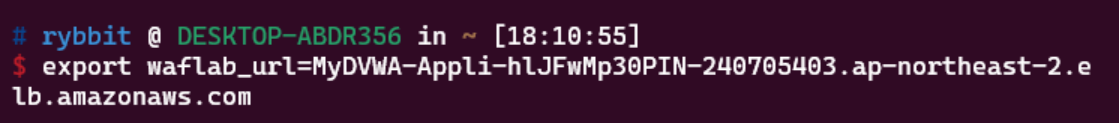 테스 트을 위해 WSL을 실행하고, DVWA 웹의 endpoint 값을 변수로 export 합니다.