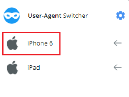 크롬 브라우저에서 User-Agent Switcher을 선택한 후 아래와 같이 iOS - iPhone6을 차례대로 선택합니다.