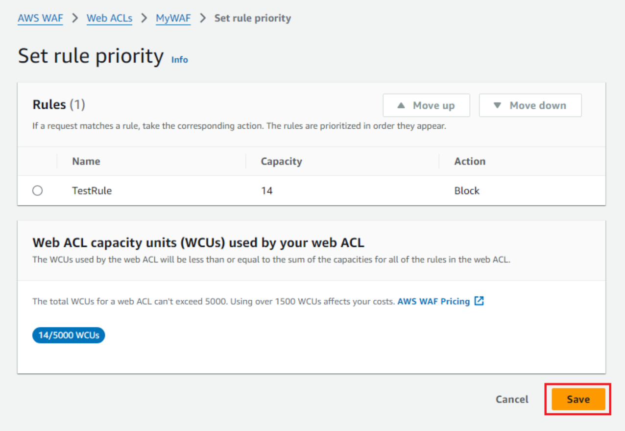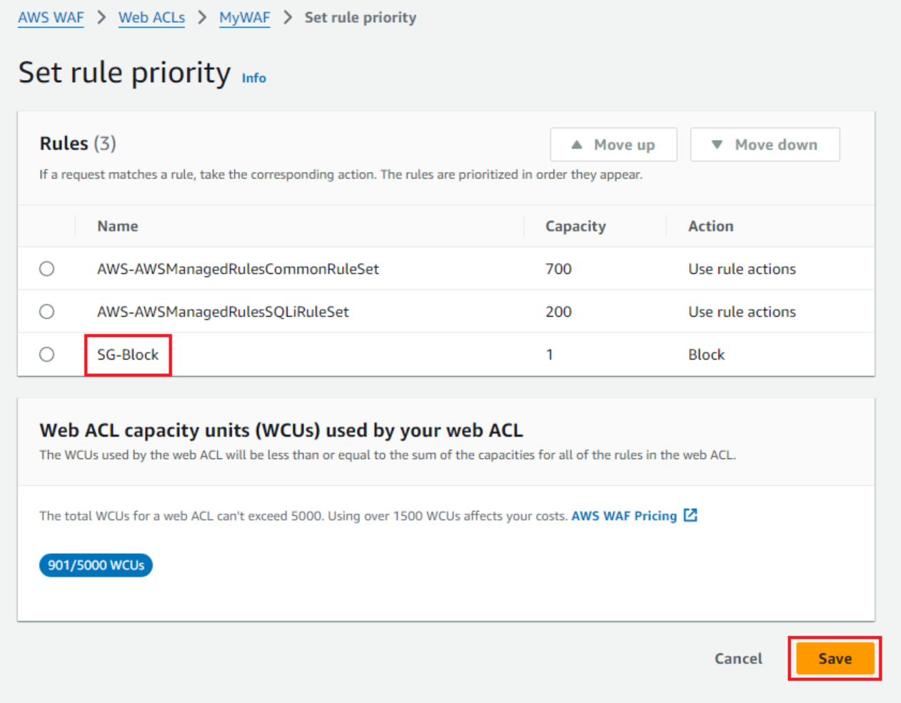 Rule이 추가된 것을 확인하고, Save 버튼을 클릭합니다.