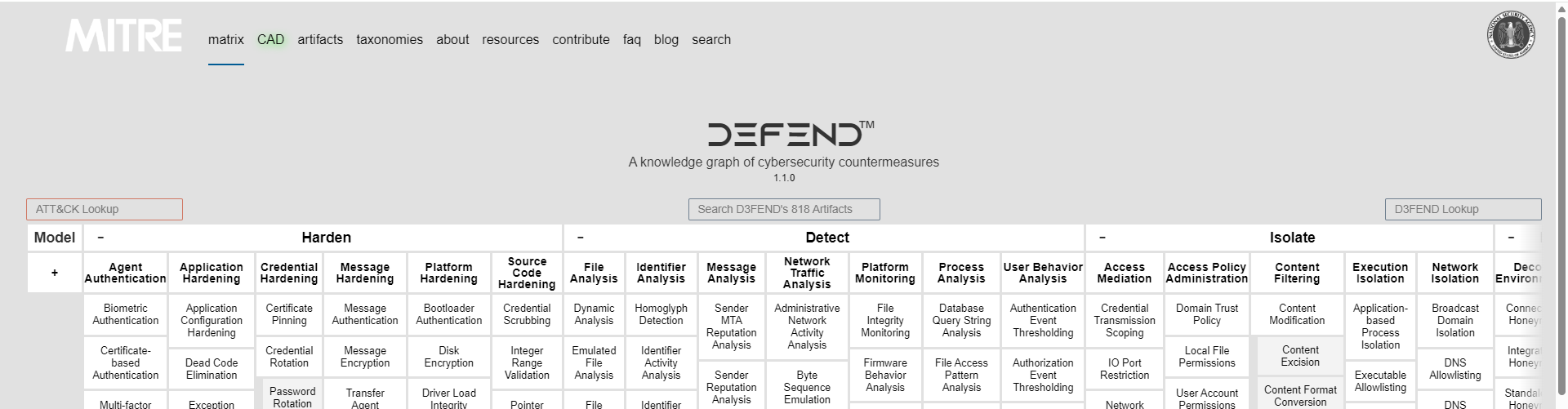 MITRE D3FEND는 ATT&CK의 공격 기술에 대응하는 방어 기술들을 체계적으로 정리한 지식 그래프입니다. "이러한 공격(ATT&CK)을 막으려면 어떤 방어 기술(D3FEND)을 사용해야 하는가?"에 대한 명확한 해답을 제공합니다.