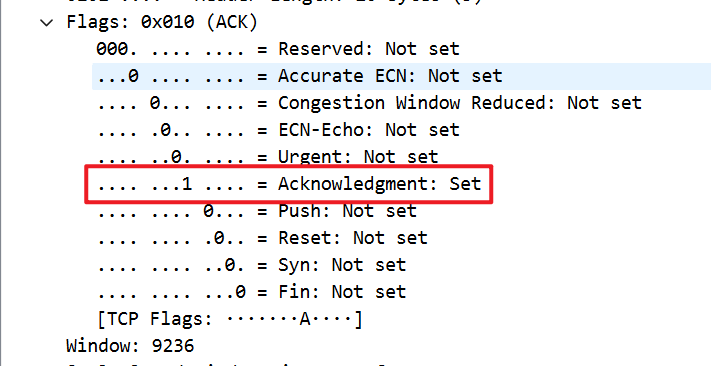 SYN, ACK 플래그가 1로 설정되있는것을 확인