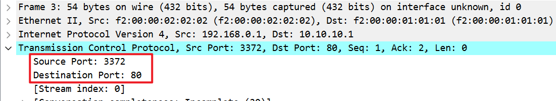 출발지 포트 80번에서 도착지 포트 3372번 으로 패킷 전송