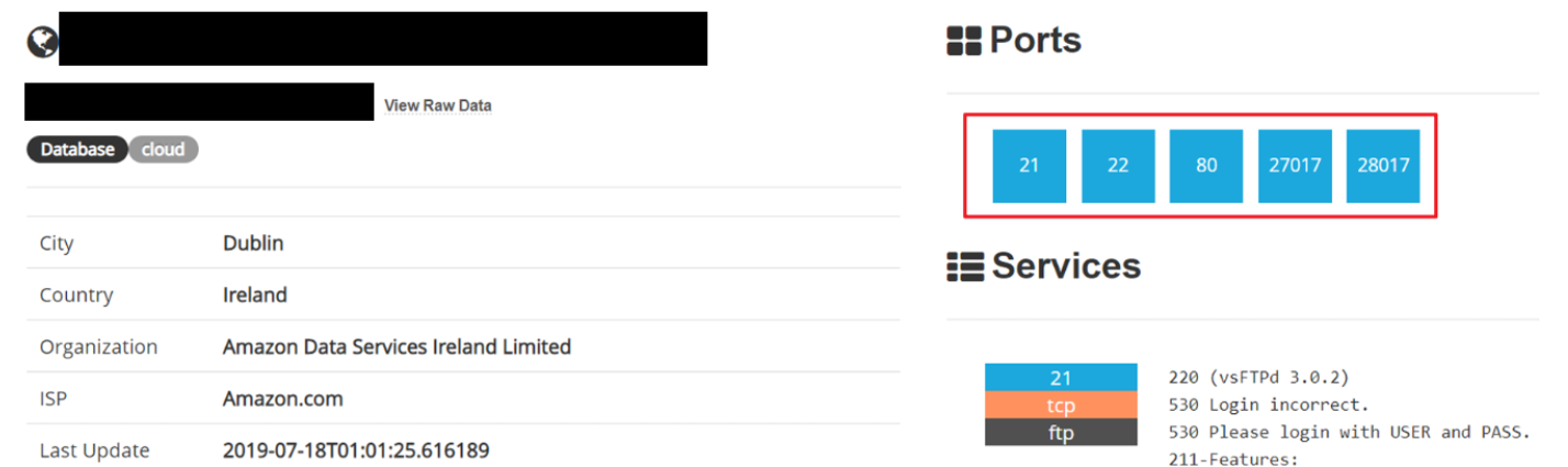 해당 IP의 오픈된 Ports 정보확인이 가능합니다.