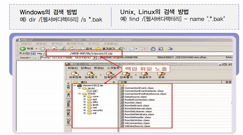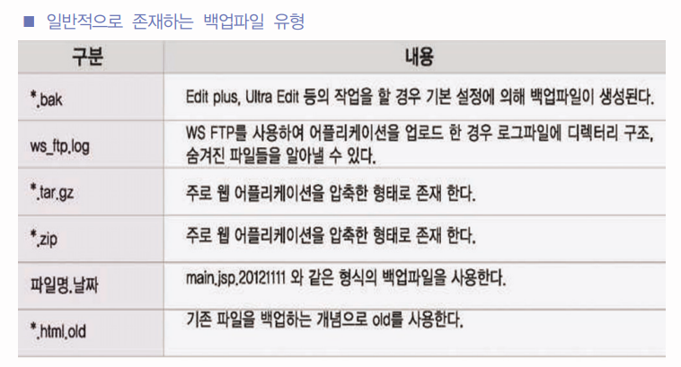 웹루트 하위에 존재하는 취약한 파일(문서파일, 백업파일, 로그파일, 압축파일등)이 외부에 노출되어 발생할 수 있는 취약점