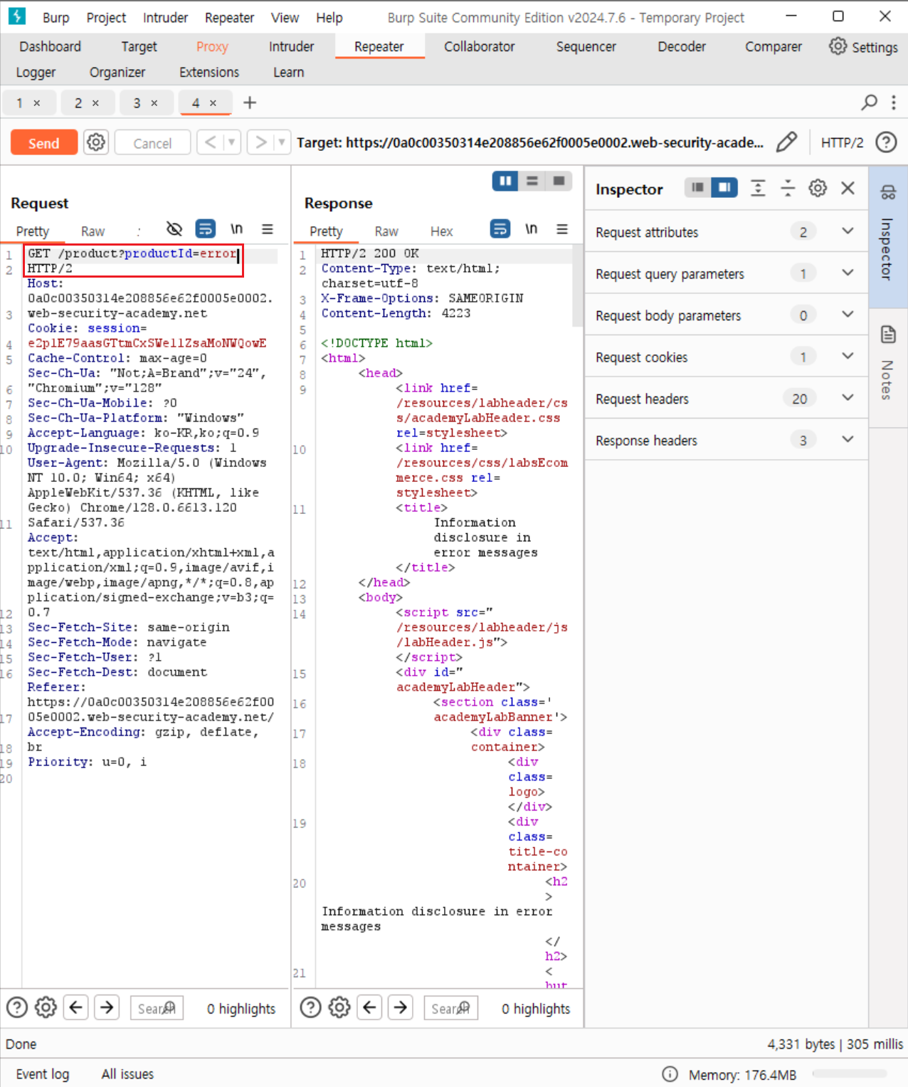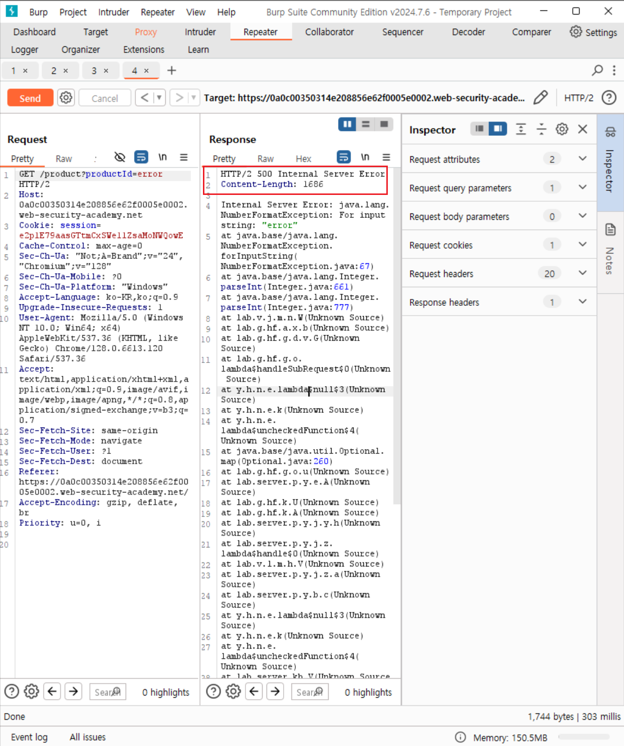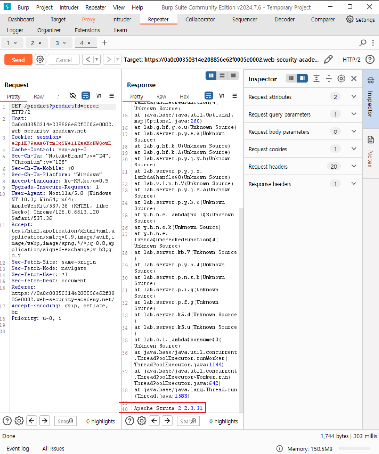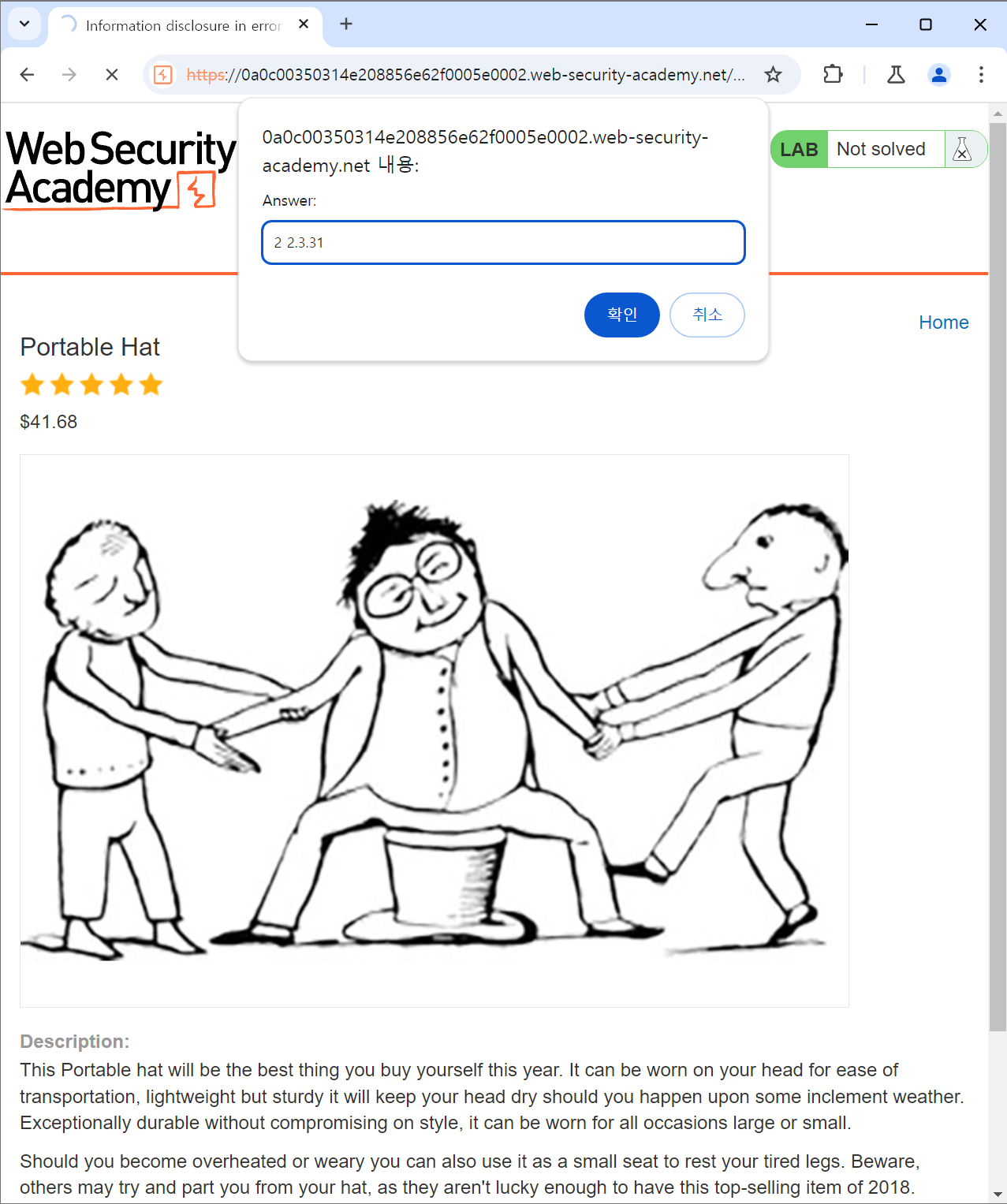 해당 실습은 에러발생 시 취약한 버전의 서드파티 프레임워크가 노출되는 것을 확인하는 실습이다. ACCESS THE LAB 버튼을 클릭하여 실습사이트로 이동할수있다.