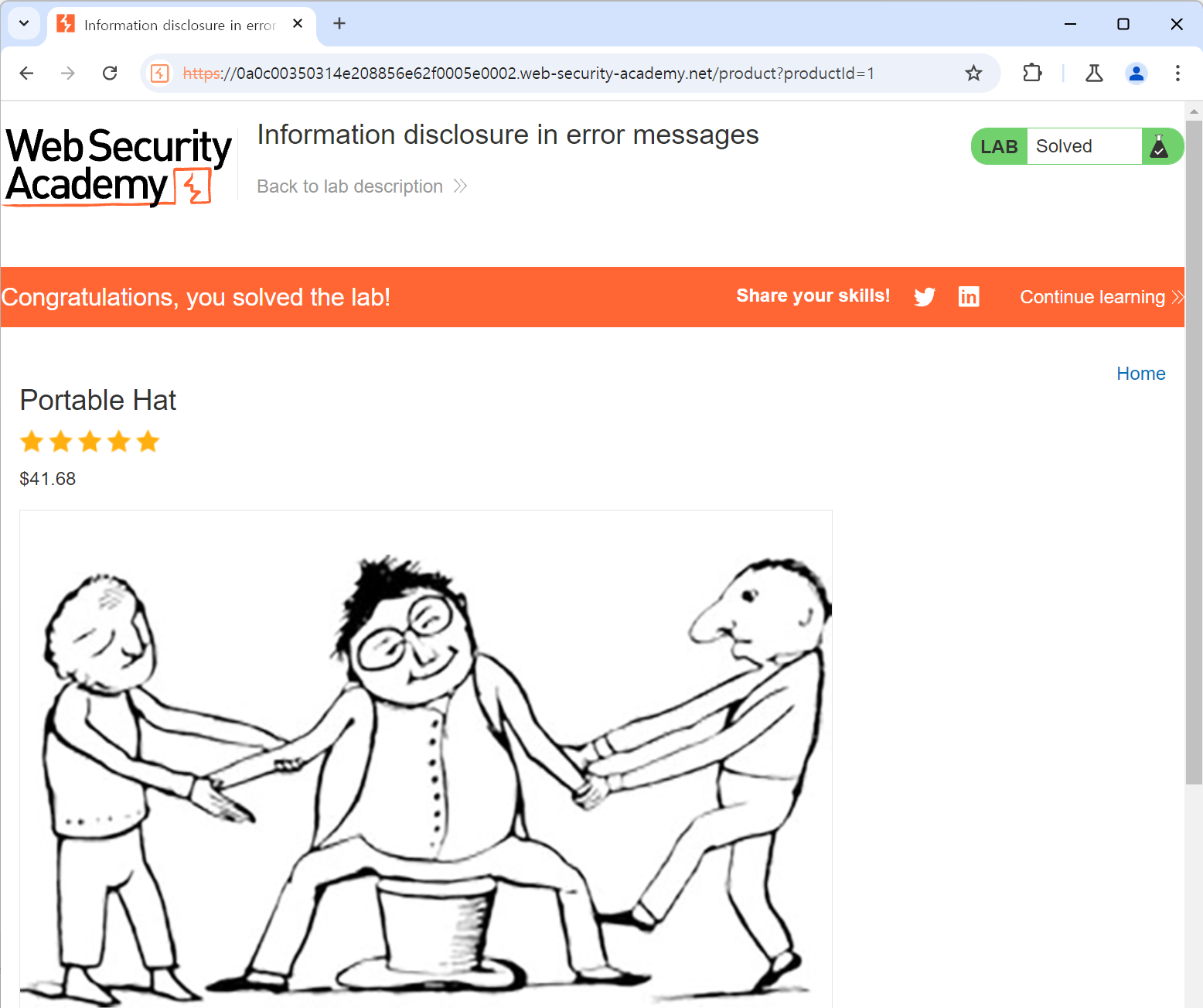 Congratulations, you solved the lab! 을 통해 해당 실습이 완료되었음을 알 수 있다.