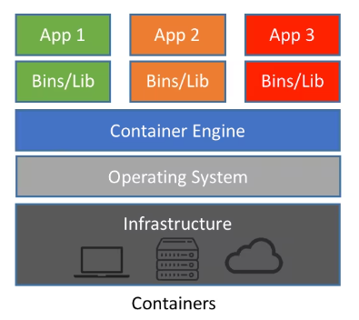 하나의 운영체제(OS) 커널을 공유하지만, 각각의 애플리케이션이 독립적인 환경에서 실행되도록 격리된 프로세스를 제공하는 기술이다. 컨테이너 기술을 사용할수 있는 대표적인 도구는 도커(Docker)가 있다. Docker는 컨테이너를 만들고 관리하는것을 도와주는 컨테이너 도구이다.