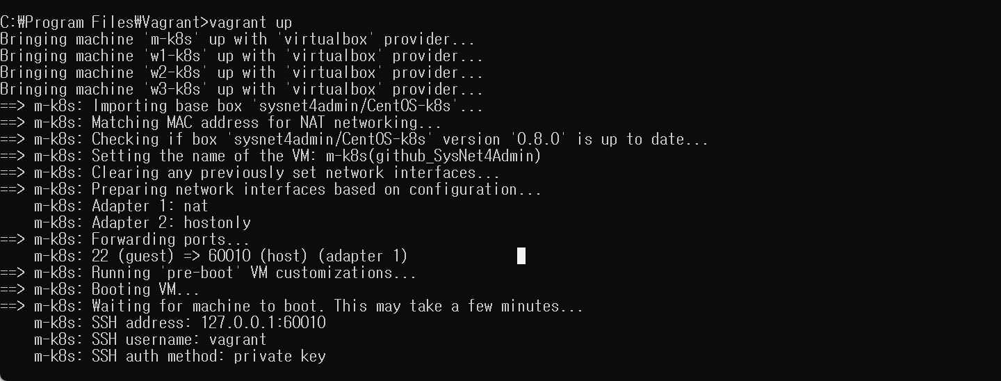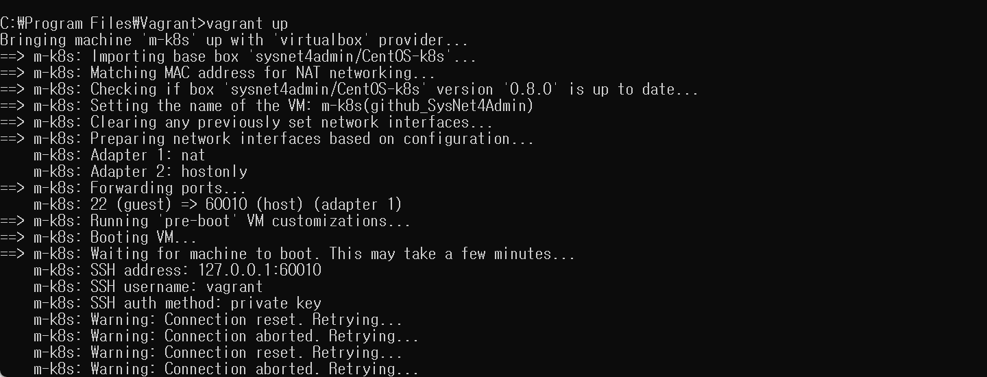 # "sysnet4admin/CentOS-k8s"라는 Vagrant 박스를 사용하여 VM 생성