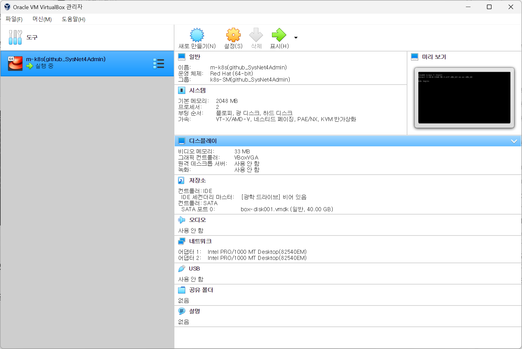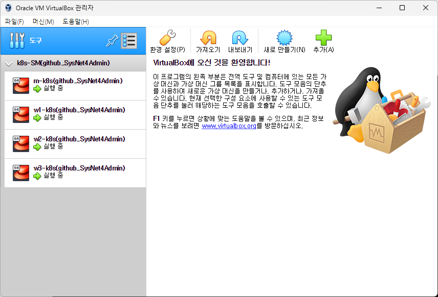 # VirtualBox VM을 "k8s-SM(github_SysNet4Admin)" 그룹에 배치