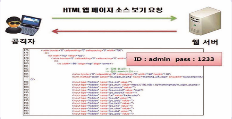 홈페이지 소스코드에 민감한 정보(ID, 패스워드, 시스템관련등)이 포함되었는지 정기적인 점검 필요