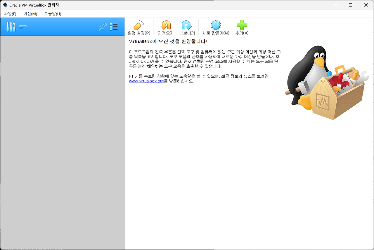 VirtualBox에 가상머신이 삭제된 것을 확인합니다.