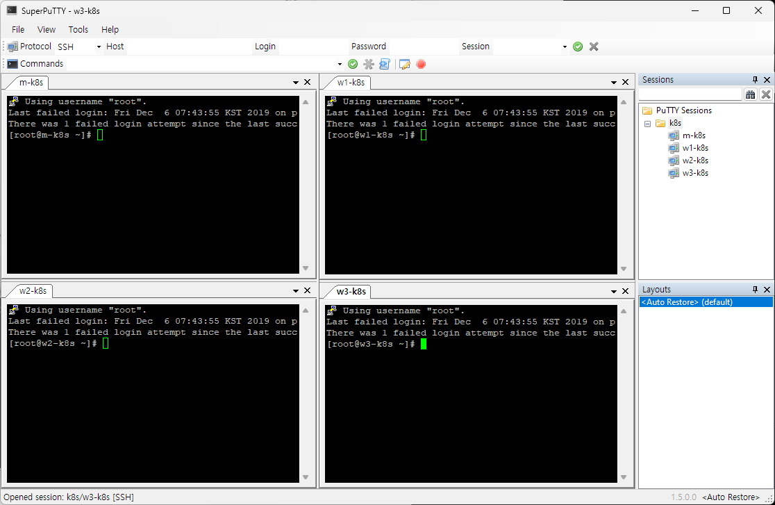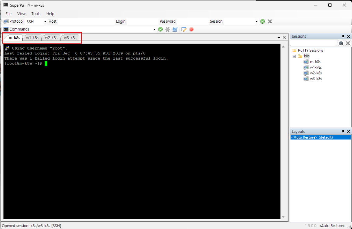SuperPutty를 사용하면, 여러 대의 가상머신을 관리하기 용이합니다.