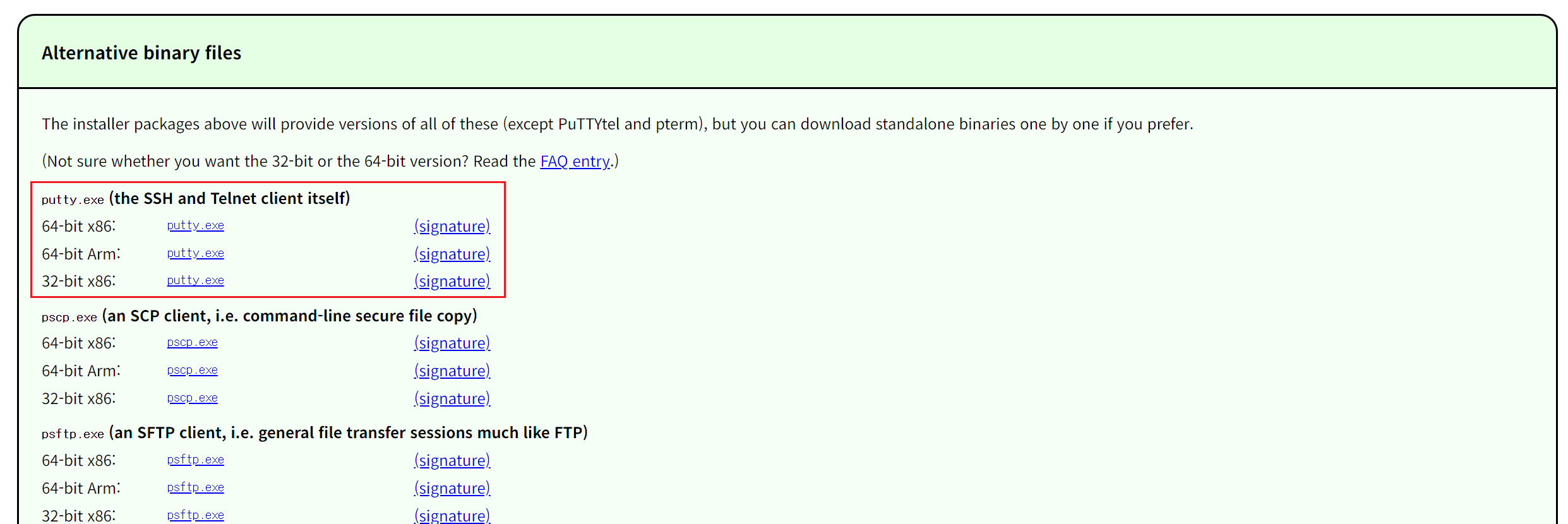운영체제 및 버전에 맞는 putty.exe 실행파일을 다운로드합니다.(64-bit x86을 설치)