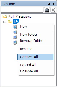 k8s 디렉터리에 오른쪽 마우스 버튼을 클릭하고, Connect All 버튼을 클릭하여 모든 가상머신에 접속합니다.(Security Alert 창이 나오면, 예 버튼을 누른다.)