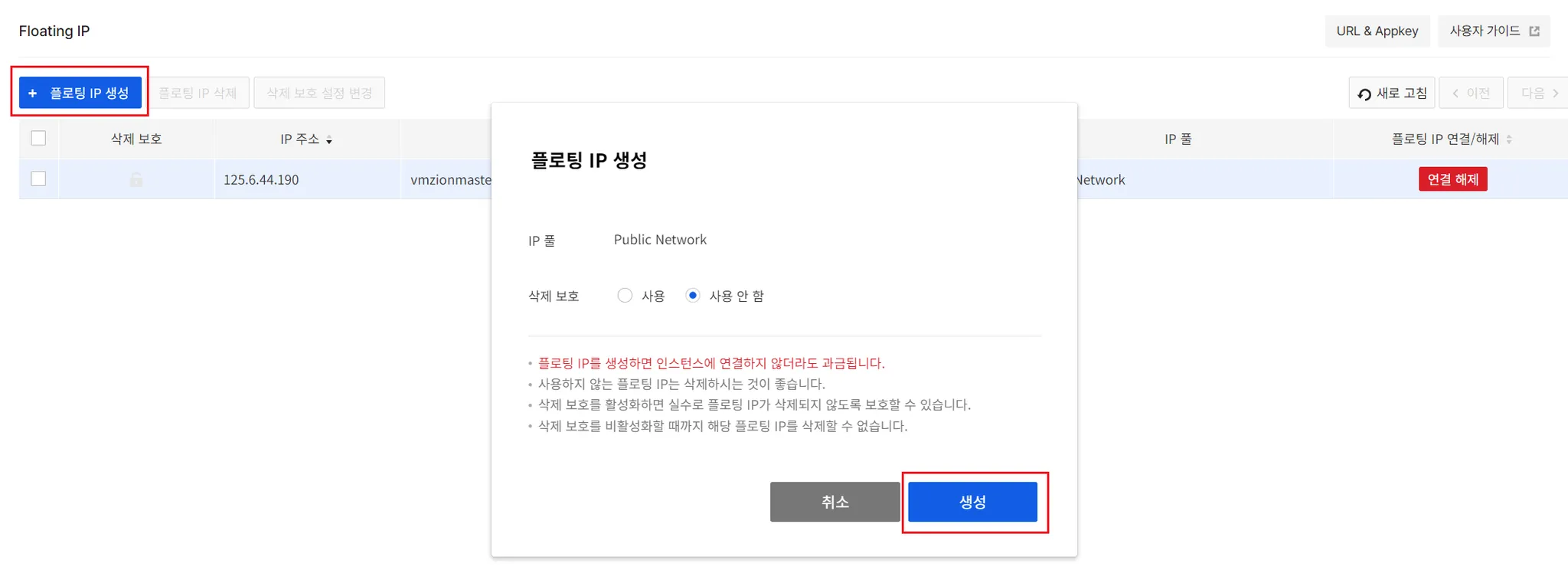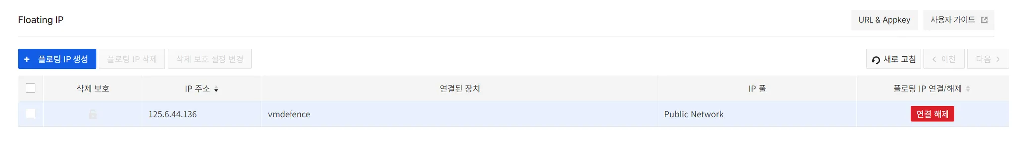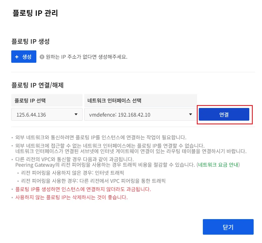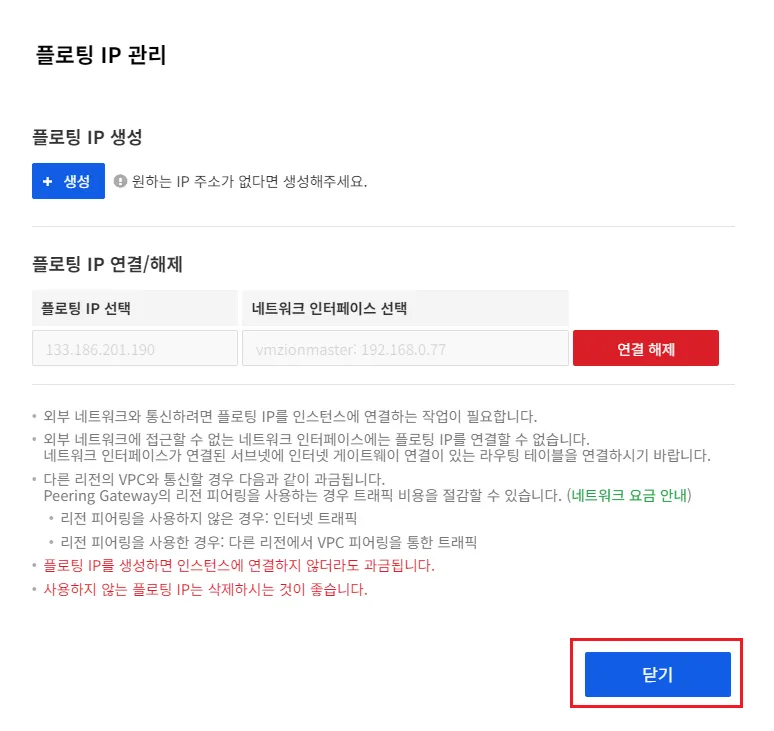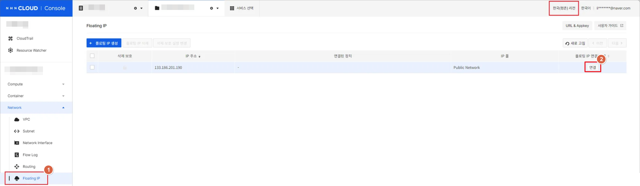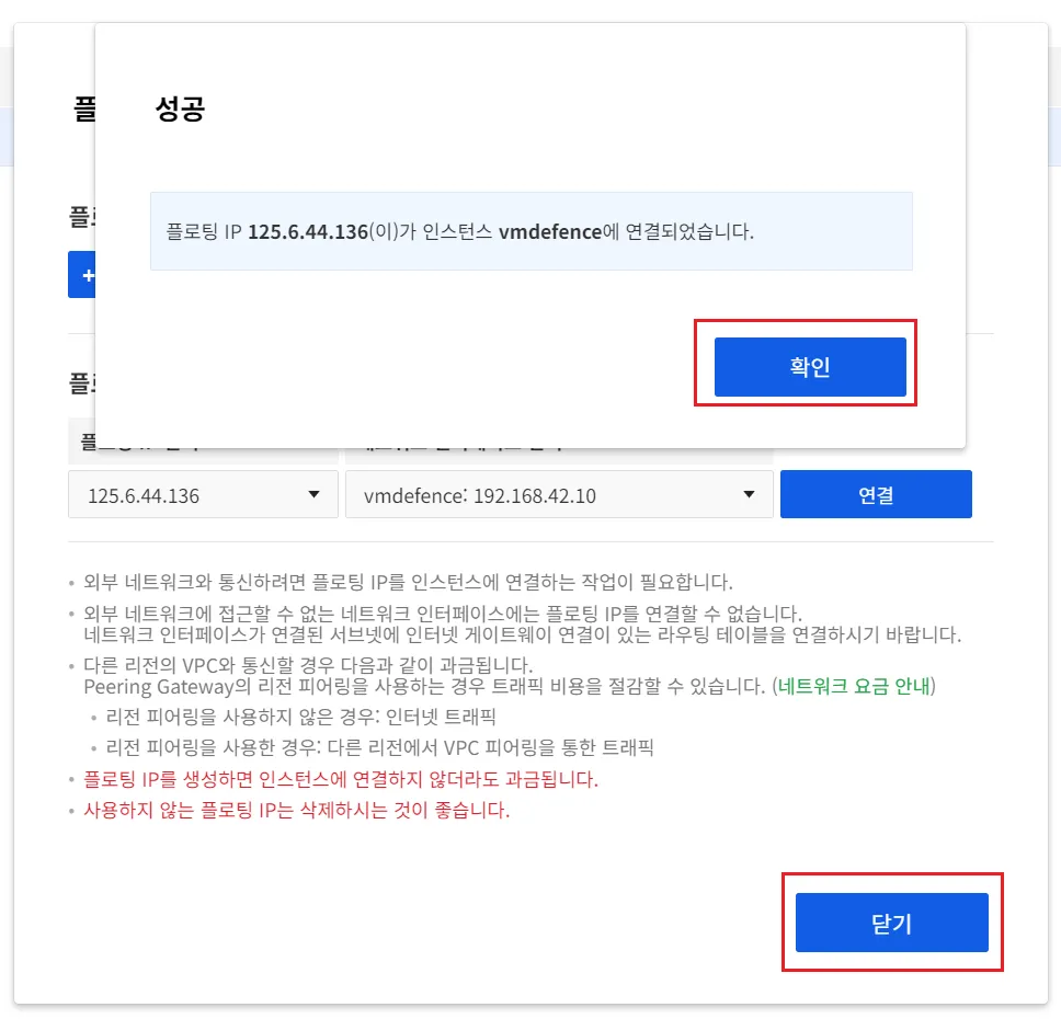 1. Network - Floating IP - 연결 - 확인 - 닫기