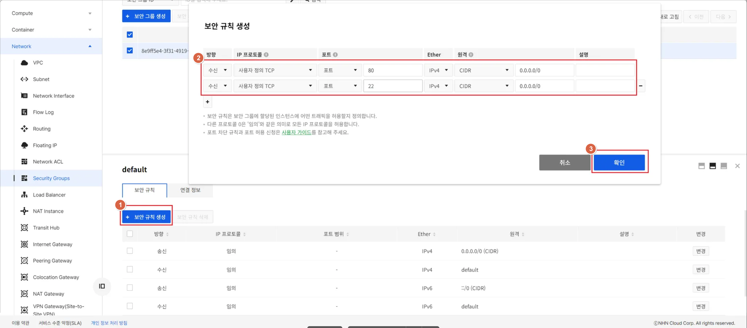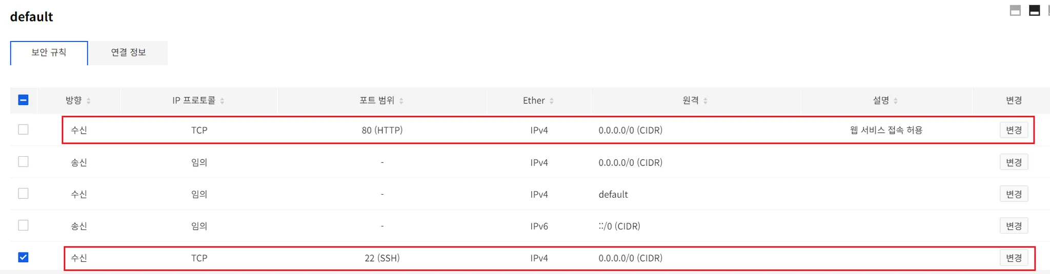 5. 보안 규칙 생성 - HTTP, SSH 보안규칙 작성 - 확인