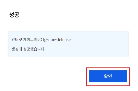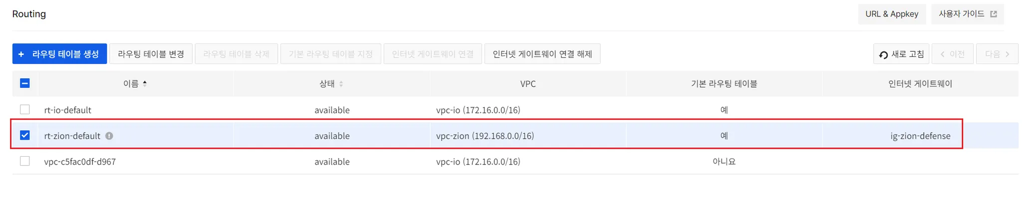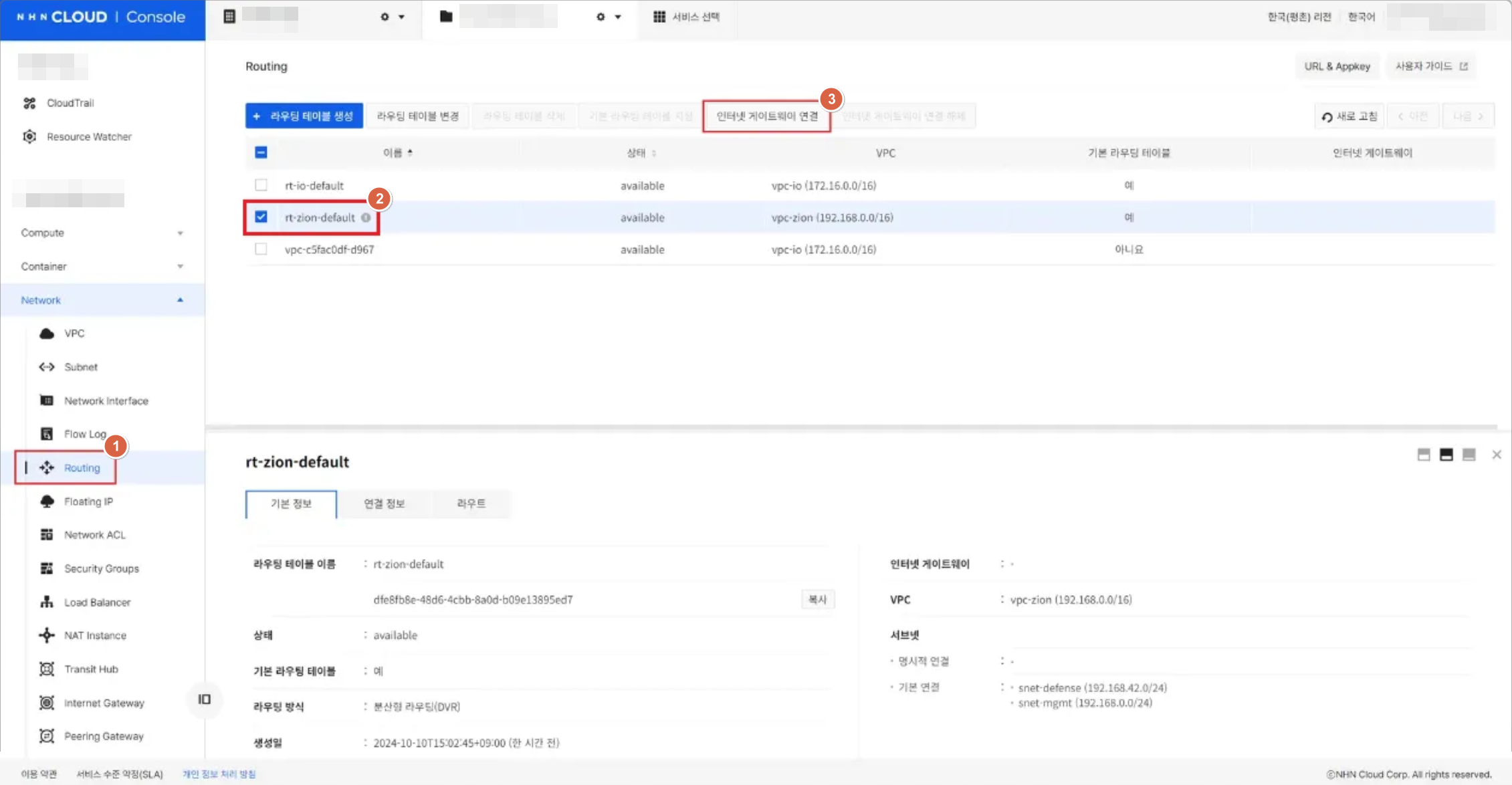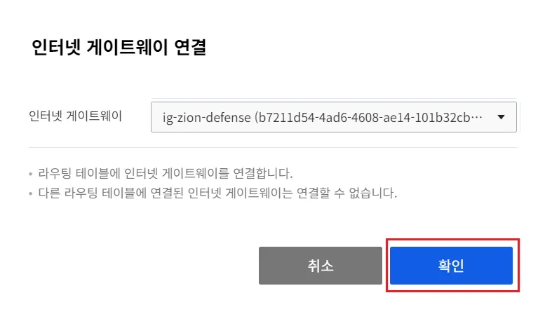 2. Network-Routing - rt-zion-default - 인터넷 게이트 웨이 연결 - 확인 - 확인