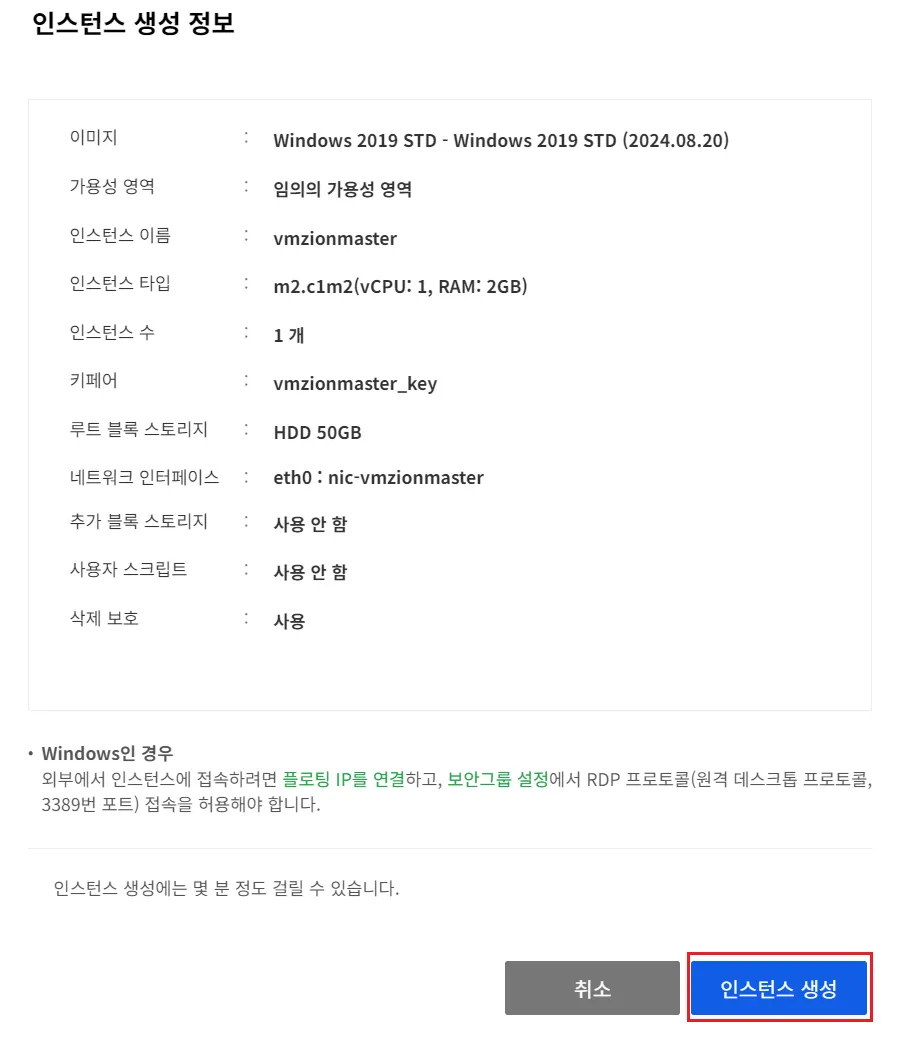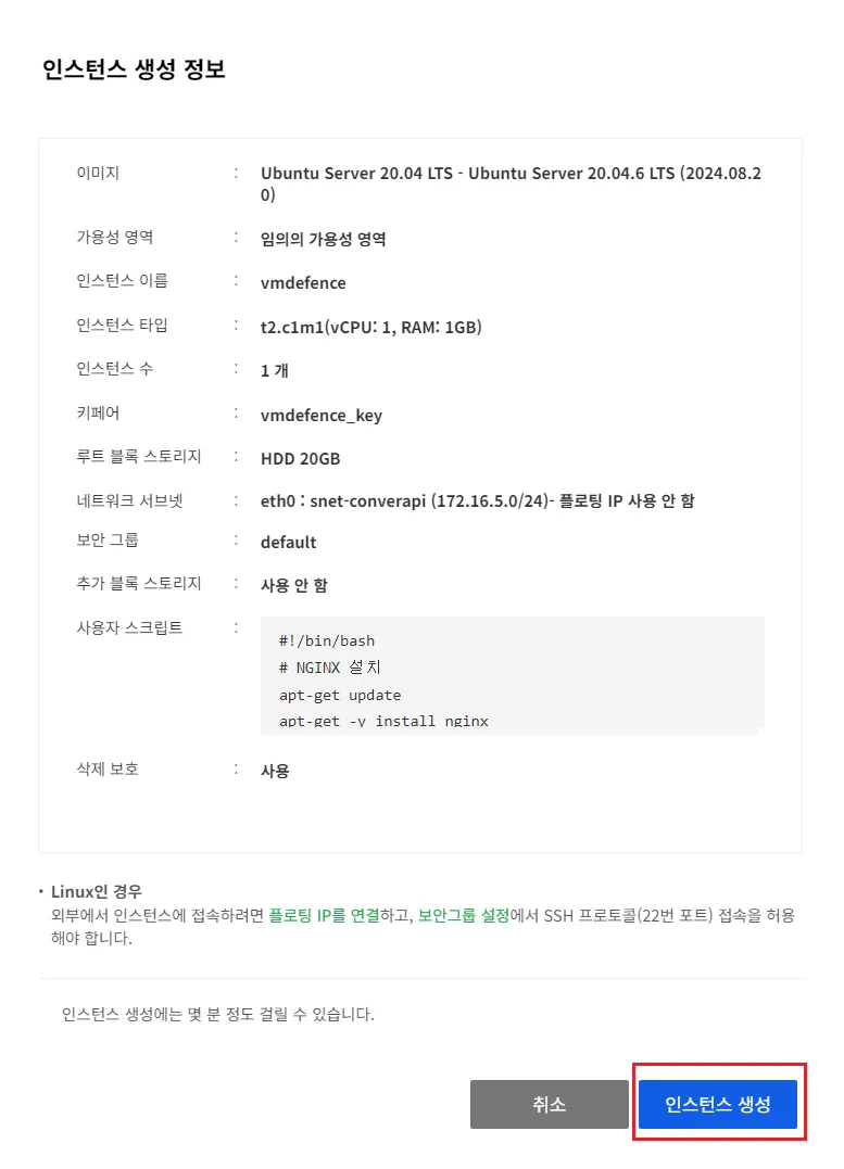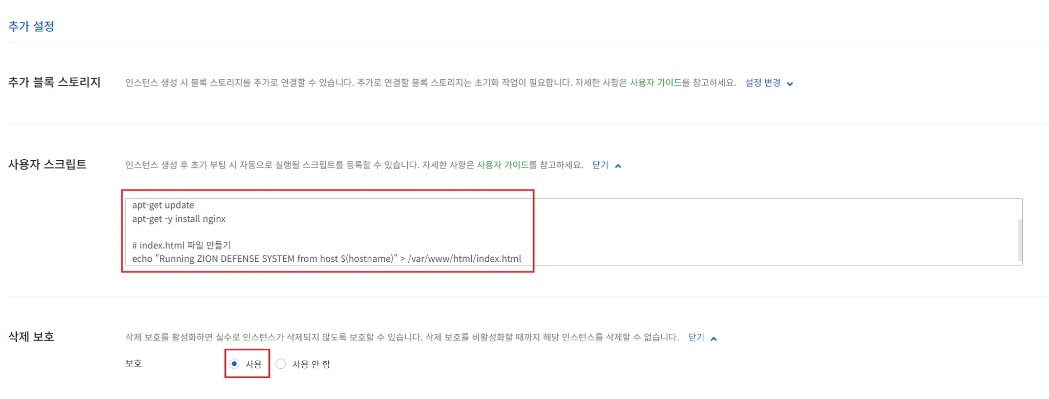 7. 추가설정 - 삭제보호 사용 - 인스턴스 생성 - 인스턴스 생성