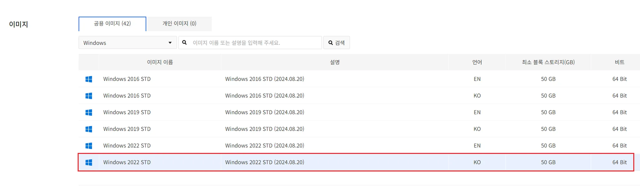 4. Windows 2022 STD KO 50GB 64Bit를 선택