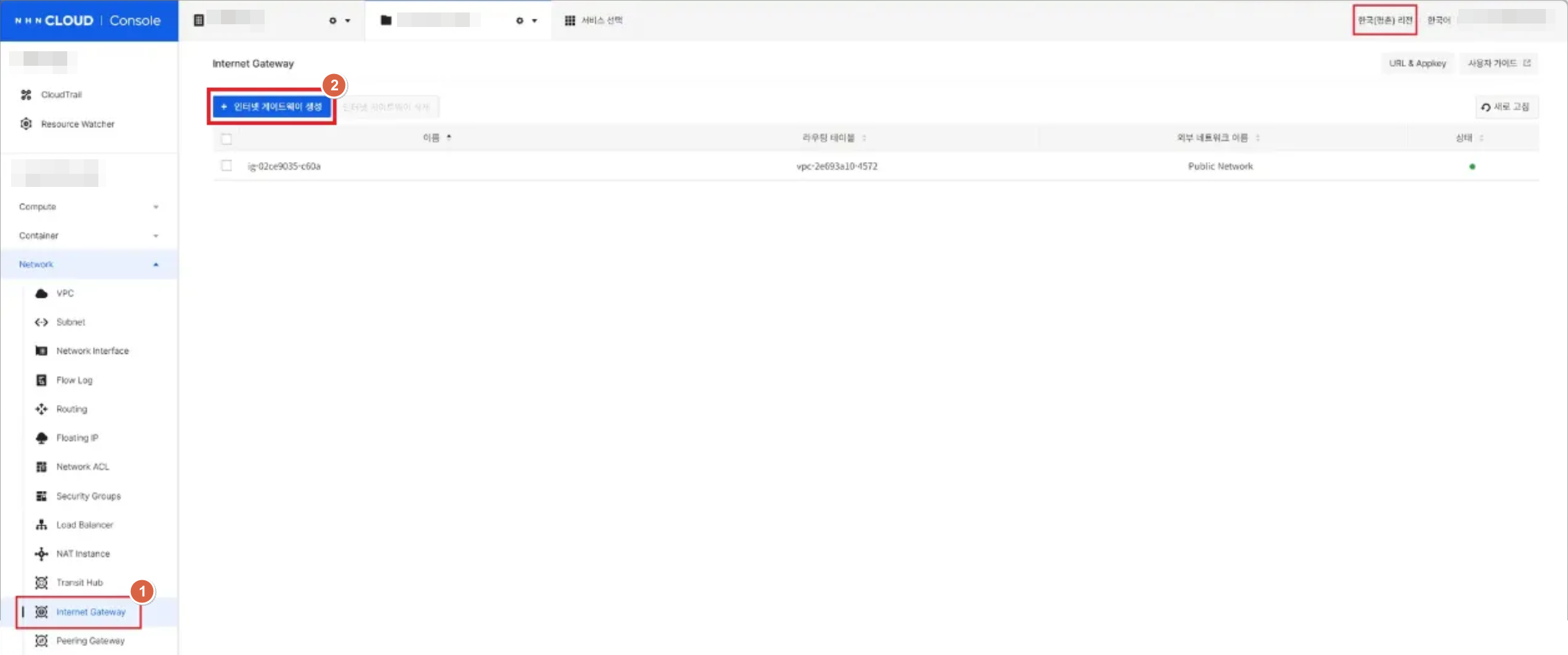 1. Network-Internet Gateway - 인터넷 게이트웨이 생성 - 이름, 외부 네트워크 - 확인 - 확인