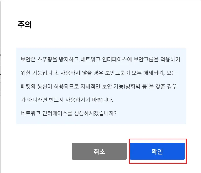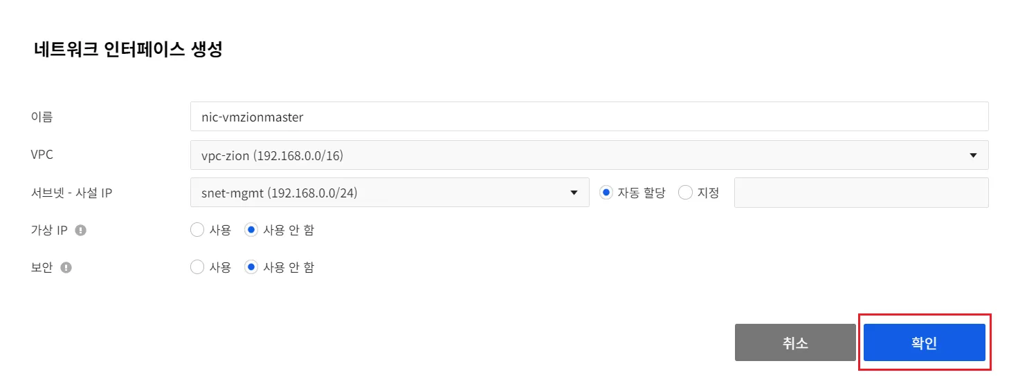 2. 이름, VPC, 서브넷, 가상 IP, 보안 - 확인 - 확인