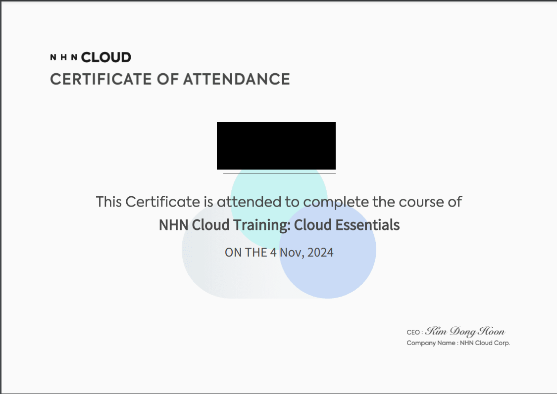 24년 11월 4일, NHN Cloud Essentials 교육에 참여하였습니다.