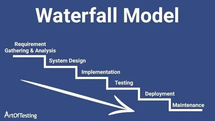 Waterfall(폭포수) 방법론은 소프트웨어 개발 방법론 중 하나로, 각 개발 단계(계획, 분석, 설계, 구현, 테스트, 배포, 유지보수)가 순차적으로 진행되며 이전 단계가 완전히 완료된 후에만 다음 단계로 넘어가는 선형적 접근 방식입니다.