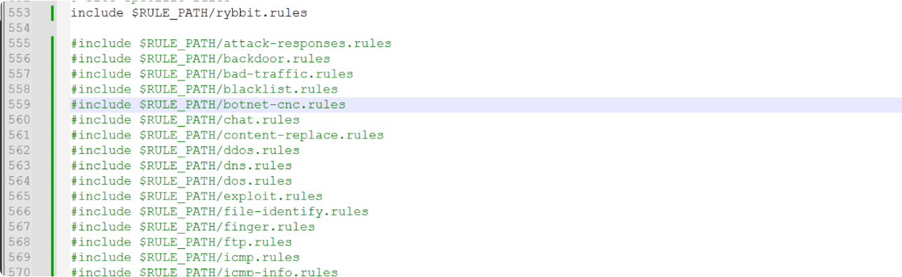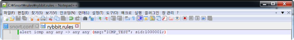 Snort에 포함할 rybbit.rules를 제외하고 주석처리를 한다