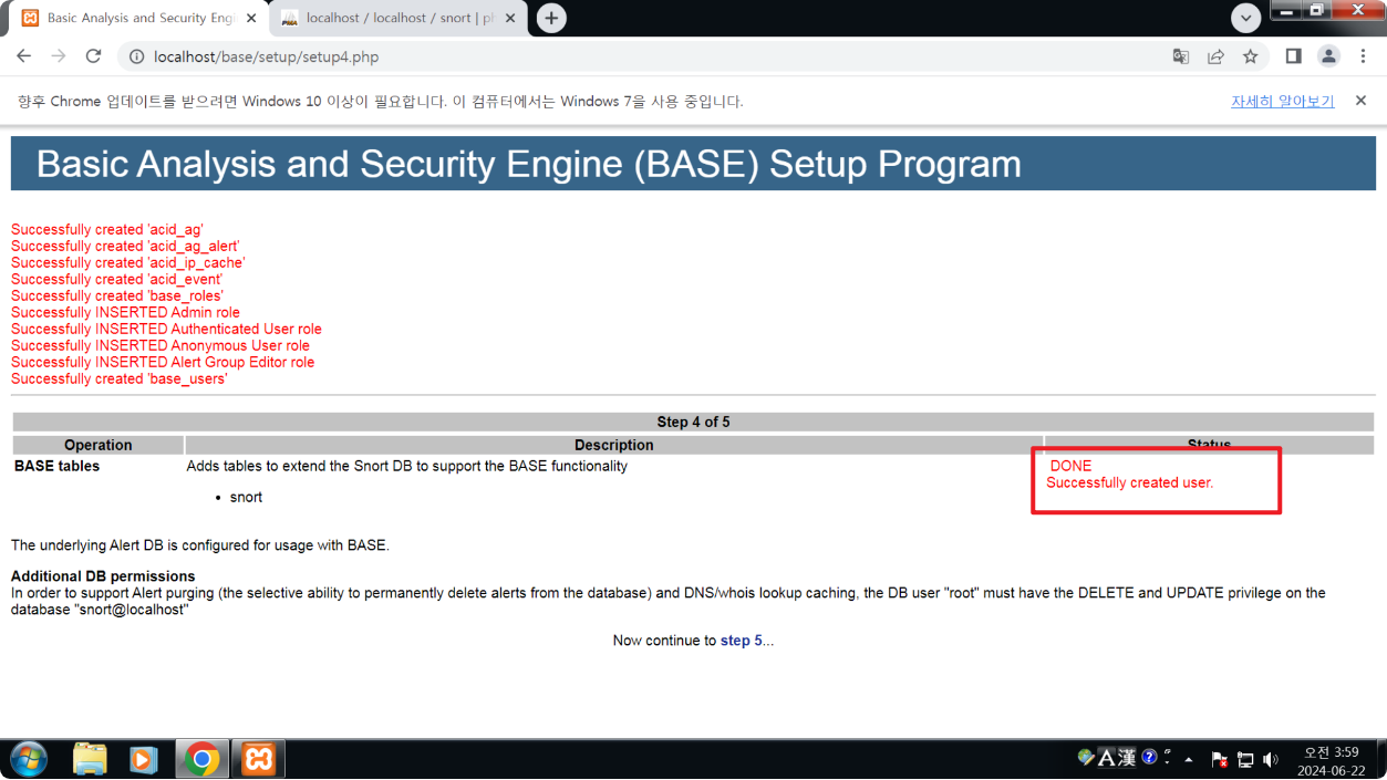 DONE Successfully created user 표시가 나오면 Base 설정은 완료가 되었다.