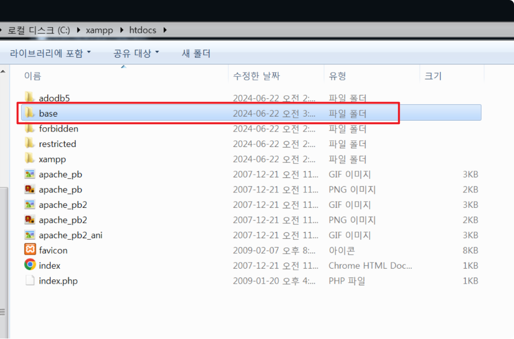 c:\xampp\htdocs\base\includes에 있는 파일을 Notepad++를 통해 실행하고, 29, 30번 줄에 주석처리를 해준다. ( // 추가)