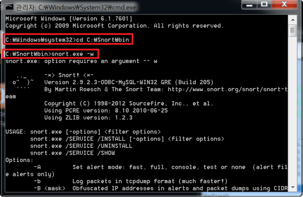 cd C:\Snort\bin