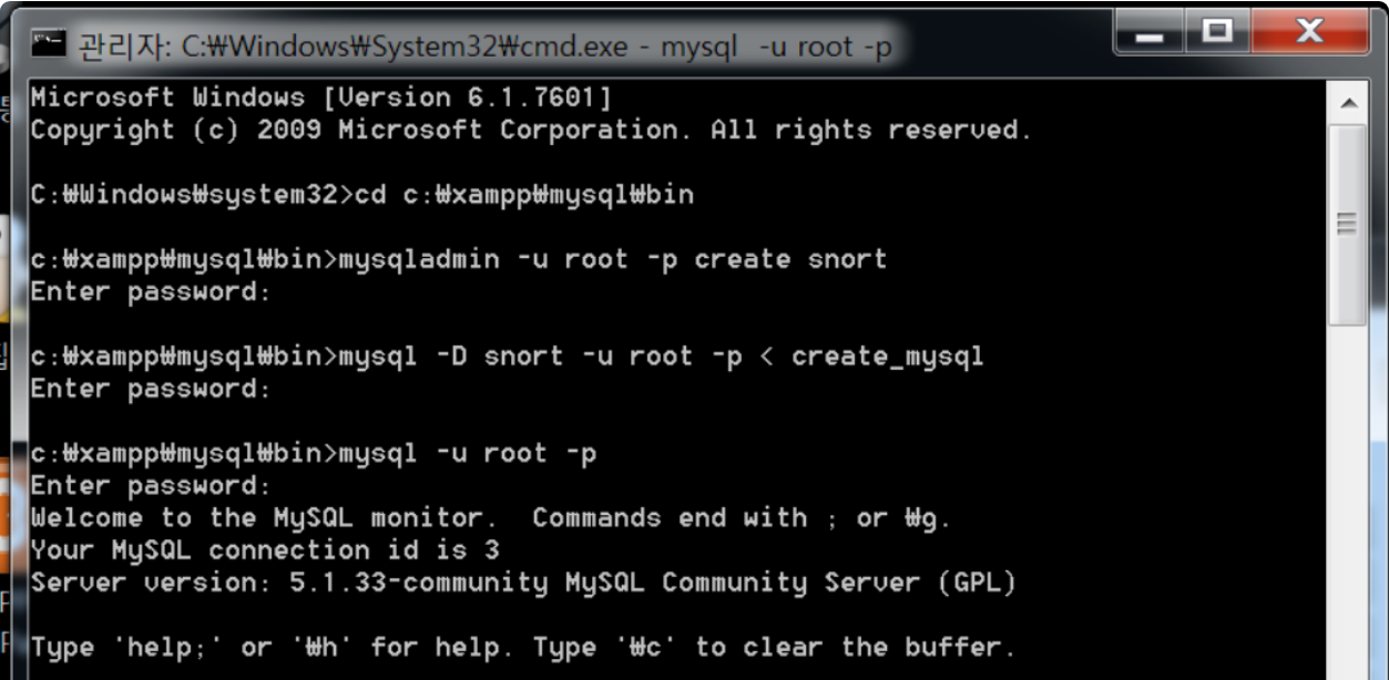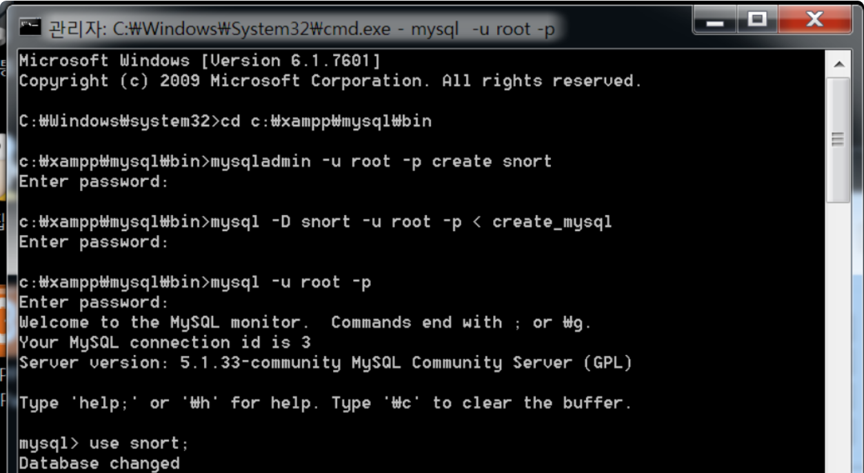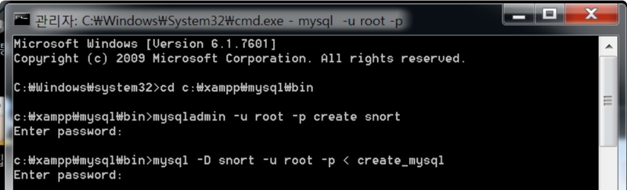 mysql -D snort -u root -p < create_mysql
