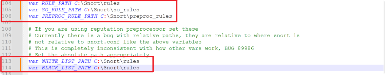 C:\Snort\etc\ 경로에서 snort.conf 파일을 Notepad++을 통해 열고, Ctrl+F 후 ipvar, portvar 두 가지 키워드를 'var'로 모두 바꾸어 준다.
