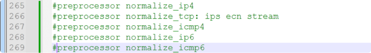 256~269줄은 IDS 모드에서 사용할수 없으므로 주석처리(# 표시)를 해준다.